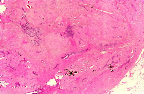 Resim 2. Adenofibroma içerisinde gelişen DKİS lezyonu (Işık mikroskobu x10 ve x40 büyütme)