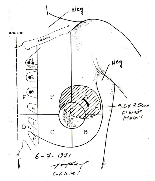 Şekil 1. Meme muayenesi sonrasında kullanılan örnek diyagram
